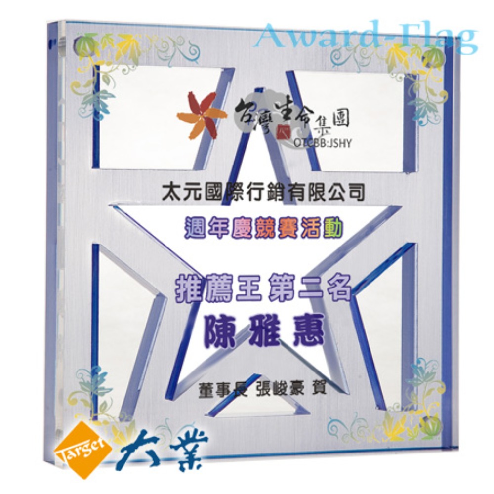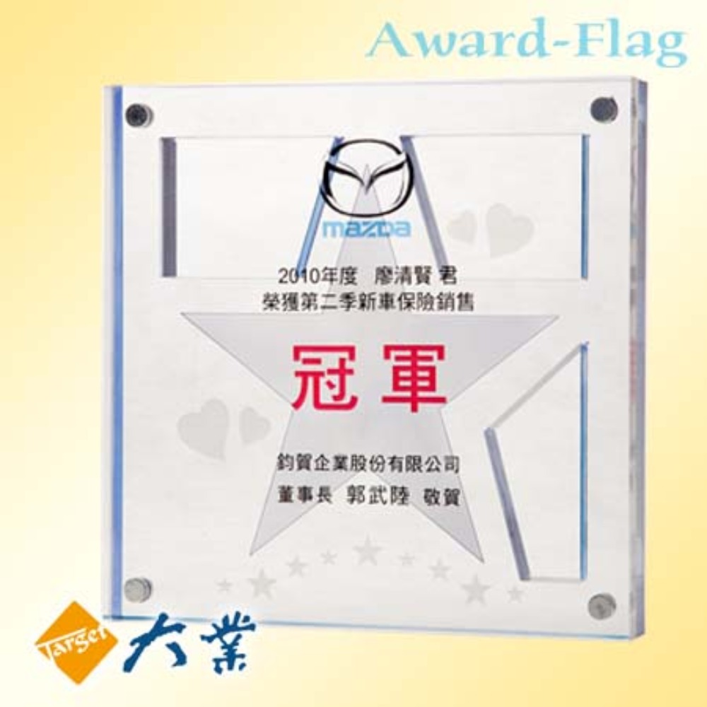 造型獎座採用壓克力、水晶、琉璃、木材、金屬…..等,運用雷射、轉印、UV彩印、專業輸出…等科技與技術,配合美編及影像結合的創意客製化獎品與個性化的禮品之創意商品。適合榮耀獎牌或文鎮擺飾及一般公司團體的禮贈品或親朋好友長官同事陞遷、喬遷、開業、生日節日喜慶禮物。