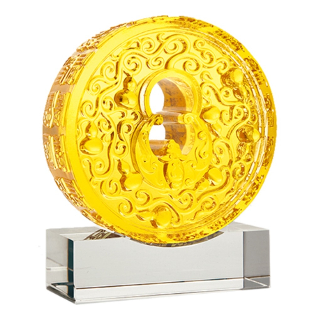 琉璃是天然礦物『矽』加入其他特殊物質如黃金、銅、鉛…等氧化物改變其顏色窯燒而成。琉璃溫潤光滑、半透明穩重富質感,中國古代琉璃是比玉石還名貴的工藝品。琉璃擬珠似玉之美,透過藝術家的巧思創意,不僅傳統也有現代的特色,由琉璃的光芒,創出多彩的生活藝術美學。適合榮耀獎牌或文鎮擺飾及一般公司團體的禮贈品或親朋好友長官同事陞遷、喬遷、開業、生日節日喜慶禮物。