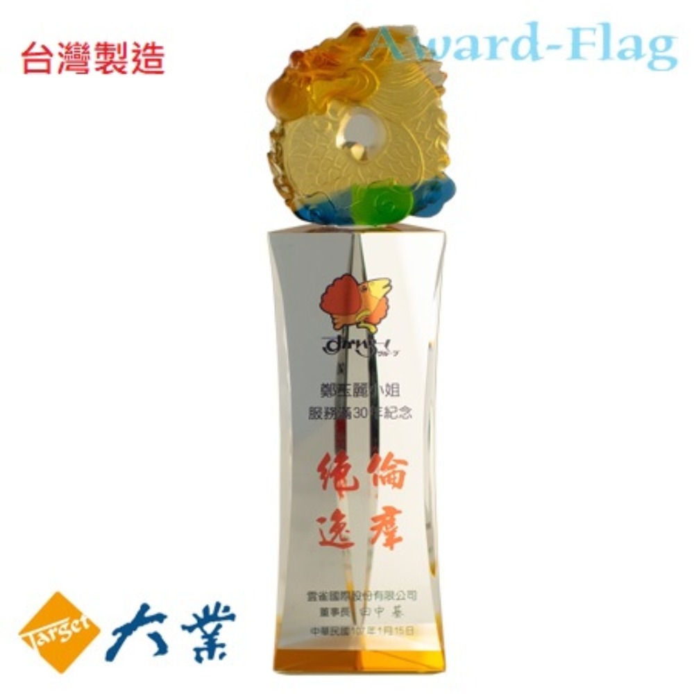 琉璃是天然礦物『矽』加入其他特殊物質如黃金、銅、鉛…等氧化物改變其顏色窯燒而成。琉璃溫潤光滑、半透明穩重富質感,中國古代琉璃是比玉石還名貴的工藝品。琉璃擬珠似玉之美,透過藝術家的巧思創意,不僅傳統也有現代的特色,由琉璃的光芒,創出多彩的生活藝術美學。適合榮耀獎牌或文鎮擺飾及一般公司團體的禮贈品或親朋好友長官同事陞遷、喬遷、開業、生日節日喜慶禮物。
