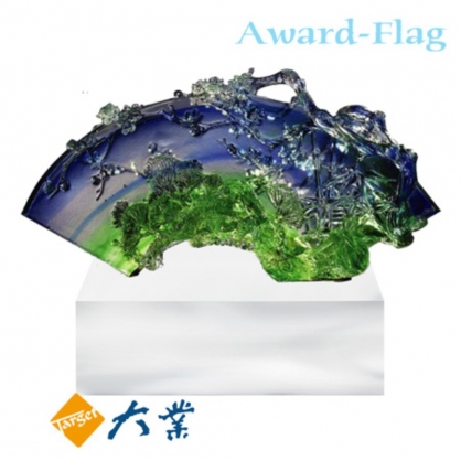 琉璃是天然礦物『矽』加入其他特殊物質如黃金、銅、鉛…等氧化物改變其顏色窯燒而成。琉璃溫潤光滑、半透明穩重富質感,中國古代琉璃是比玉石還名貴的工藝品。琉璃擬珠似玉之美,透過藝術家的巧思創意,不僅傳統也有現代的特色,由琉璃的光芒,創出多彩的生活藝術美學。適合榮耀獎牌或文鎮擺飾及一般公司團體的禮贈品或親朋好友長官同事陞遷、喬遷、開業、生日節日喜慶禮物。