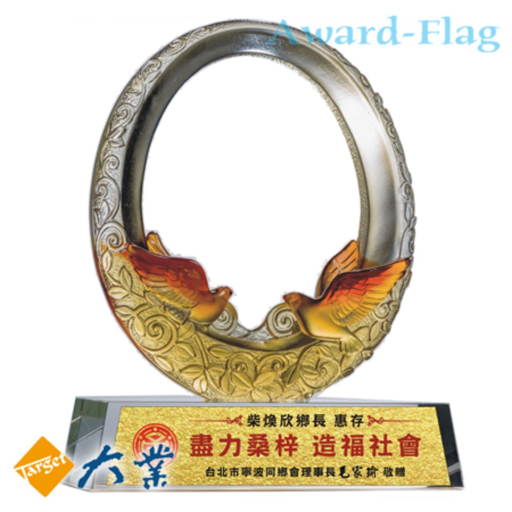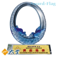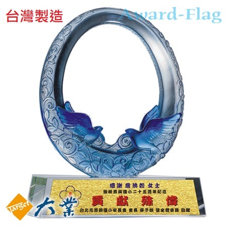 材質:琉璃+水晶琉璃是天然礦物『矽』加入其他特殊物質如黃金、銅、鉛…等氧化物改變其顏色窯燒而成。琉璃溫潤光滑、半透明穩重富質感,中國古代琉璃是比玉石還名貴的工藝品。琉璃擬珠似玉之美,透過藝術家的巧思創意,不僅傳統也有現代的特色,由琉璃的光芒,創出多彩的生活藝術美學。適合榮耀獎牌或文鎮擺飾及一般公司團體的禮贈品或親朋好友長官同事陞遷、喬遷、開業、生日節日喜慶禮物。
