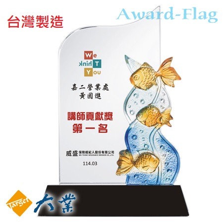 材質:琉璃+水晶琉璃是天然礦物『矽』加入其他特殊物質如黃金、銅、鉛…等氧化物改變其顏色窯燒而成。琉璃溫潤光滑、半透明穩重富質感,中國古代琉璃是比玉石還名貴的工藝品。琉璃擬珠似玉之美,透過藝術家的巧思創意,不僅傳統也有現代的特色,由琉璃的光芒,創出多彩的生活藝術美學。適合榮耀獎牌或文鎮擺飾及一般公司團體的禮贈品或親朋好友長官同事陞遷、喬遷、開業、生日節日喜慶禮物。